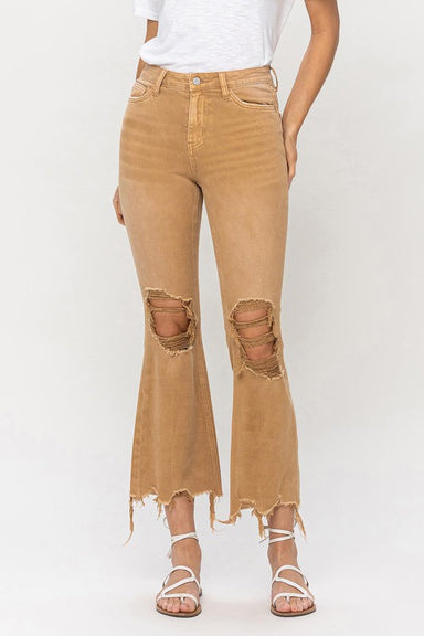 View full detailsVINTAGE HIGH RISE CROP FLARE JEAN COMFORT STRETCH DENIM, HIGH RISE WAIST, VINTAGE STYLE, DISTRESSED DETAILS, RAW HEM WITH DESTRUCTION, CROPPED LE...
