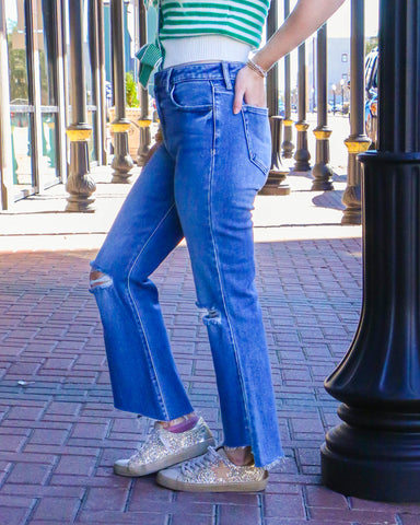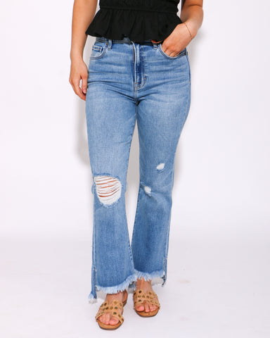 View full detailsElevate your style with our Shy Girl High Rise Crop Flare in Influencer! These trendy and flattering jeans feature a high rise waist and a cropped ...