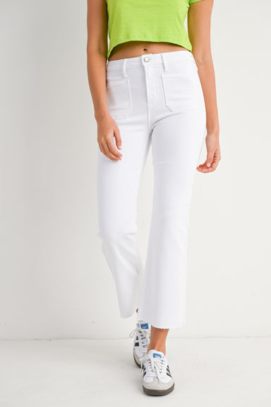 View full detailsExperience the ultimate in comfort and style with our Shy Girl White High Rise Crop Flare jeans! The high rise waist provides a flattering fit, whi...