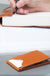 Our all leather money clip which securely holds all your bills and credit cards. Its sleek look makes it easy to carry in your pocket or in a purse.