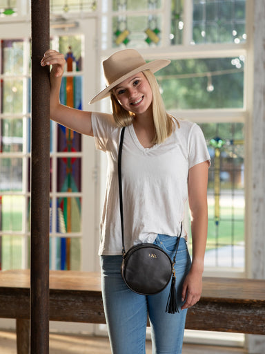 View full detailsThis trendy new crossbody bag is perfect for any girl on the go! The zipper features a super fun tassel and is perfect for concerts and ...