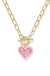 Ari Heart Enamel Frame Chain Necklace in Gold Pink Iridescent Glitter Glass