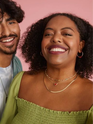 View full detailsAdd some hand-beaded contrast to your winter collection with the color blocked design of the Nova Heart Gold Strand Necklace in Red Mix. Wear on it...