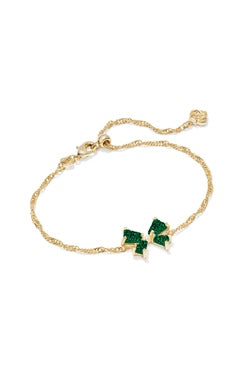 View full detailsCan’t get enough of the bow trend? Neither can we! That’s why we designed the Blair Gold Bow Small Delicate Chain Bracelet in Emerald Drusy. Combin...