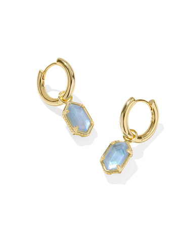 View full detailsAdd a bold brilliance to your everyday huggies with the Hallie Gold Huggie Earrings in Sky Blue Mother of Pearl. A timeless shape that evokes elega...