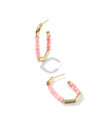 View full detailsOur Sylvia Gold Pink Chalcedony Hoop Earrings combine crafted beads with our iconic oval shape for a beachy chic statement. These hoops add a pop o...