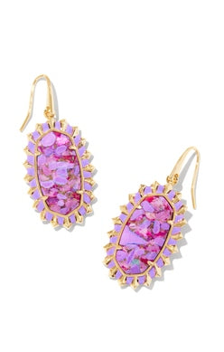 View full detailsThe Dani Gold Color Burst Frame Drop Earrings in Bronze Veined Violet Magnesite combine our love of color, shape, and innovative design. We’ve take...