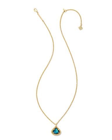 Framed Kendall Short Pendant Necklace in Gold Teal Abalone