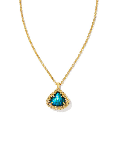 Mini Abbie Satellite Short Pendant Necklace in Gold Navy Abalone