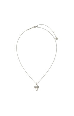 Pearl Cross Short Pendant Necklace in Rhodium White Pearl