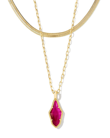 View full detailsWith the Evelyn Gold Multi Strand Necklace in Dark Magenta Illusion, necklace layering has never been more elegant (or effortless!). An on-trend he...