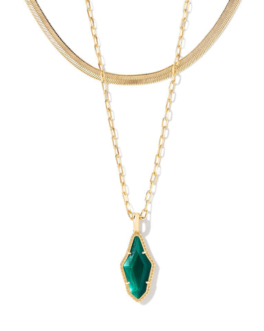 Evelyn Multi Strand Necklace in Gold Dark Green Mother of Pearl