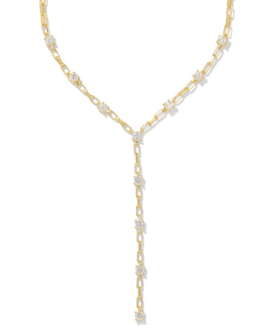 View full detailsGlamour never goes out of style—and neither does sparkle! Celebrate both when you wear the Lexi Gold Y Necklace in White Crystal, a contemporary ch...