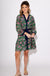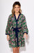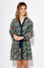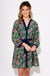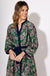 Bold paisley meets classic tailoring in this eye-catching mini dress. The green paisley background is beautifully accented with navy contrast bands and a removable navy belt to cinch the waist just right. Featuring a round V-neck band collar, button-front closure, and flattering ¾ sleeves, this dress strikes the perfect balance between playful pattern and polished structure.