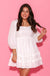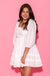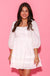 3/4 puff sleeve cotton poplin ruffle square neckline babydoll mini dress.
