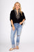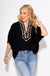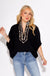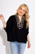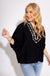 Introducing The Roar Line Top in Black, a versatile and fashionable dolman top that will elevate your wardrobe. This solid top features a leopard print accented caftan-inspired split neck placket, adding a touch of boldness to any outfit. The elasticated sleeve band and lightweight material make it comfortable to wear all day. Embrace your wild side with this must-have piece.