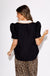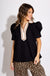 Elegant meets effortless in this standout pullover top featuring structured pleated puff sleeves and a caftan-inspired high neck band collar. The tan scalloped edge adds a soft, feminine contrast against the sleek black fabric, while the tailored silhouette keeps it polished. Perfect for tucking into trousers or dressing up denim