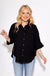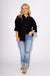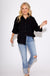 Classic meets bold in this black ¾ sleeve top, designed with a sleek silhouette and unexpected pops of personality. Eye-catching animal print trim along the sides and back adds just the right amount of edge, making this piece perfect for day-to-night styling. Pair it with jeans for a casual look or tuck it into tailored pants for a polished, playful twist.