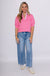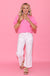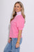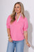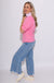 Striped and Solid Ruffled Neck Top in Pink