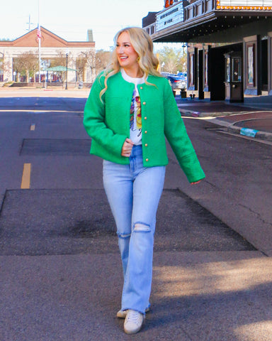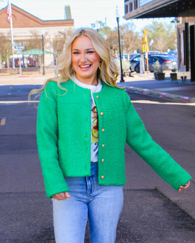 View full detailsWrap yourself in style and warmth with our Button Up Boucle Jacket! This versatile and chic piece features a button-up design and cozy boucle fabri...