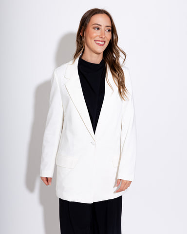 View full detailsStretch Knit Open Pocket Front Boyfriend Blazer-WHITE Upgrade your wardrobe with this versatile boyfriend blazer! Made from a comfortable and stret...