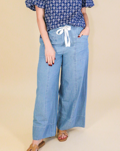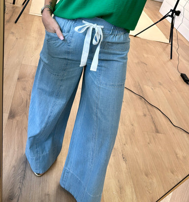 View full detailsEffortlessly chic, these high-waist pull on pants in light blue will elevate your wardrobe. The elasticated waistband and adjustable drawstring ens...