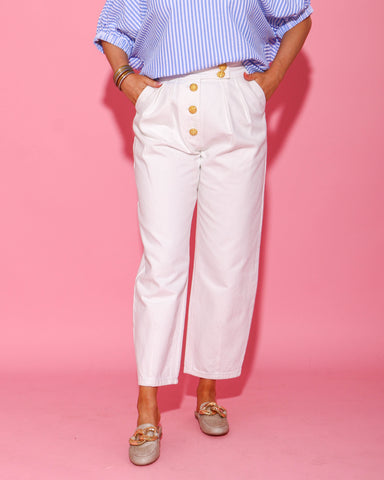 Elevate your denim game with our White High Waisted Wide Leg Denim! These pants feature eye-catching pearl details along the sides, adding a touch ...