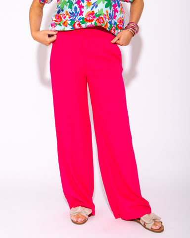 View full detailsMake a statement this school year in these hot pink cropped wide-leg pants, designed with comfortable front pockets and a flattering relaxed fit. W...