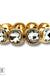 This bracelet has square clear rhinestones in a gold tone setting. The rhinestones go all the way around.