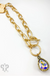 This linked chain toggle front necklace features an Austrian pear shaped teardrop crystal. The stone setting is custom made for Pink Panache in the USA. Approximately 16 inches in length and has a front toggle closure.