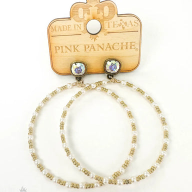This earring features pearl and bead circle. It hangs from an 8mm AB (iridescent) Austrian crystal post in a setting custom made for Pink Panache i...