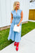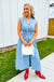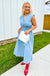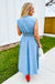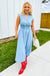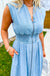 This sleeveless denim midi dress is the perfect addition to your wardrobe! With a flattering smocked waist, front zip detail, and convenient pockets, it's both stylish and practical. The lightweight and unlined fabric make it ideal for warmer weather. Elevate your style with this versatile and chic dress.
