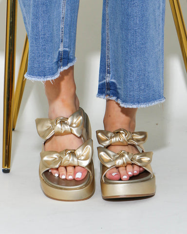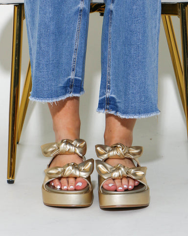 View full detailsCrowned with two dainty bows, our KIKI flatform sandals are made from soft faux leather. This pair rests on a wedge platform you can wear c...