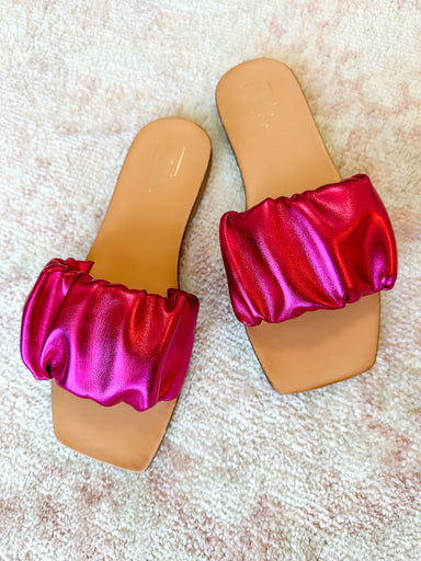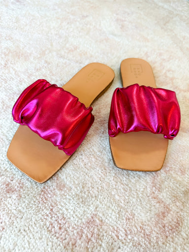 View full detailsGet pedi-season-ready in our BELINDA slip-on sandals. The straps are made from ruched faux metallic leather and the sole is finished with a square...