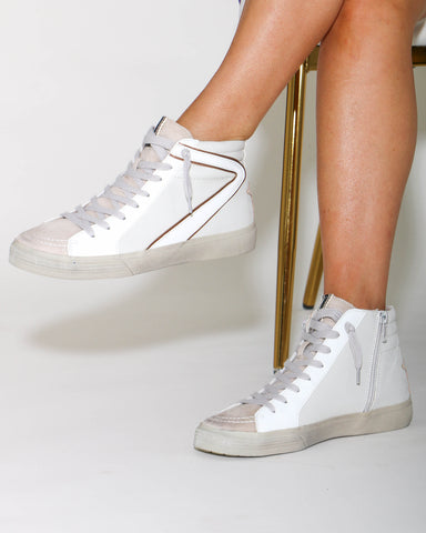 Nodding to vintage basketball sneakers, our ROONEY high-tops stand out for their unmistakable style and versatility. This pair is crafted from glit...