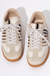 Step up your style game with Stevie Sneaker in Metallic Ombre — the ultimate retro-inspired sneaker that’s anything but basic. Featuring a striking metallic ombre side stripe that fades from bold to soft, paired with a matching metallic heel accent, this sneaker brings a fresh twist to classic cool. Crafted from luxe faux leather suede and finished with a durable gum sole, the Stevie sneaker blends eye-catching style with all-day comfort. Ready to own the spotlight? Slip on and let your look shine.