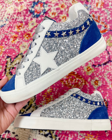 Slip-on styling No tie Traction signature outsole Fits true to size Silver Glitter Navy Silver laces
