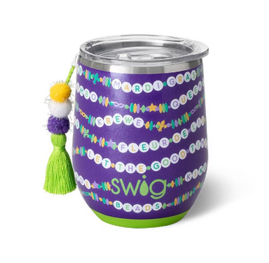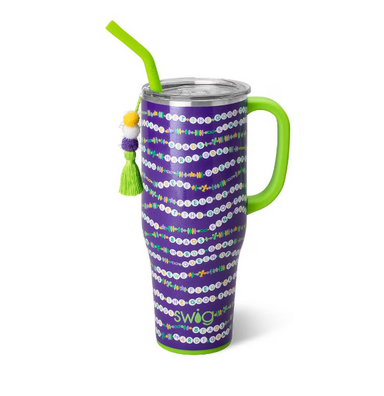 View full detailsThe Swig that started it all! ✨ Cue the beads! Embrace your Mardi Gras Era with these festive friendship bracelets on a glitter lilac background. O...