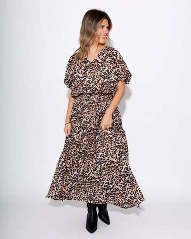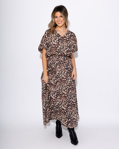 This Spotted in Style Two Piece Set combines a chic leopard print waist-length top with dolman sleeves and a flattering bubble hem, paired with a l...
