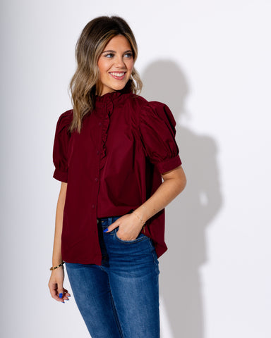 View full detailsMeet your new go-to blouse for the season. This puff sleeve top features a beautifully ruffled band collar and delicate ruffle trim that frames the...