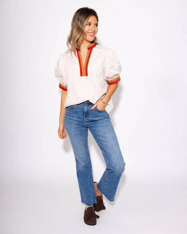 View full detailsMeet your new go-to blouse for the season. This puff sleeve top features a beautifully ruffled band collar and delicate ruffle trim that frames the...