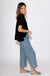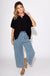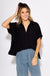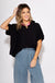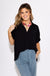 Classic with a modern twist, this rich black top features a split collar neckline and short sleeves with banded scrunch detailing for a hint of playful structure. The relaxed fit and side slit hem offer ease and movement, making it a versatile staple for workdays or weekends. Effortlessly pairs with denim, trousers, or skirts for a pulled-together look with a touch of charm.