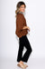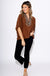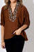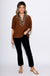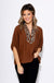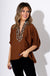 Introducing The Roar Line Top in Caramel, a versatile and fashionable dolman top that will elevate your wardrobe. This solid top features a leopard print accented caftan-inspired split neck placket, adding a touch of boldness to any outfit. The elasticated sleeve band and lightweight material make it comfortable to wear all day. Embrace your wild side with this must-have piece.