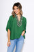 Introducing The Roar Line Top in Fern, a versatile and fashionable dolman top that will elevate your wardrobe. This solid top features a leopard print accented caftan-inspired split neck placket, adding a touch of boldness to any outfit. The elasticated sleeve band and lightweight material make it comfortable to wear all day. Embrace your wild side with this must-have piece.