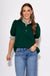Elevate your wardrobe with The Ruffle Stripe Knit Top, designed with solid knit fabric and stylish puff shoulders for a flattering silhouette. Its short sleeves are accented by contrast striped ruffle bands at the neck and cuffs, adding a playful yet sophisticated touch. Perfect for both casual outings and dressier occasions, this top combines comfort with eye-catching detail to keep you looking effortlessly chic.