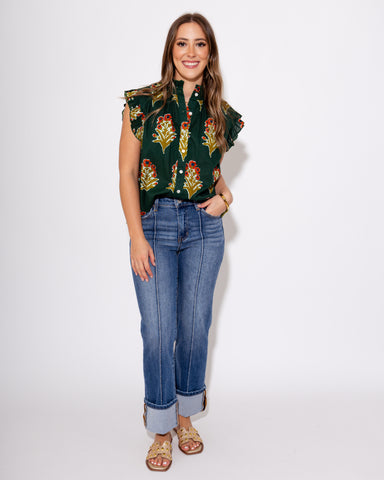 View full detailsElevate your wardrobe with the Floral Grove Flutter Top in vibrant green. Featuring delicate flutter sleeves and a charming floral detail, this top...