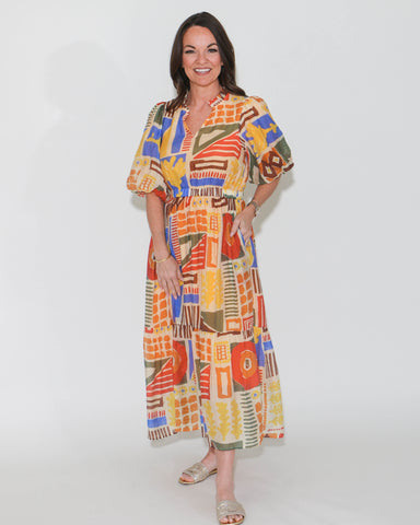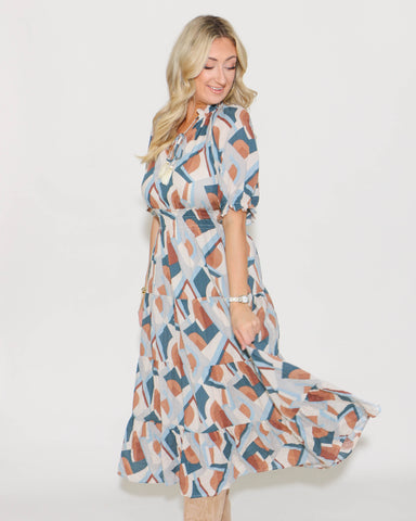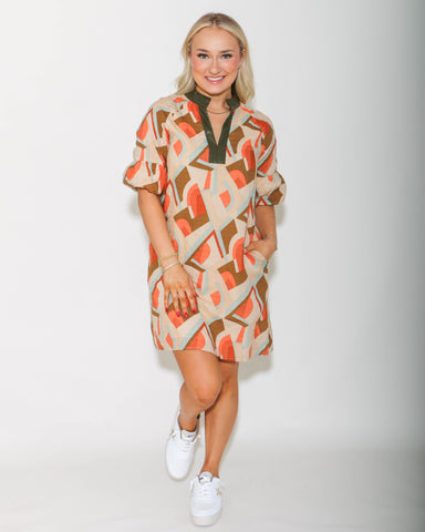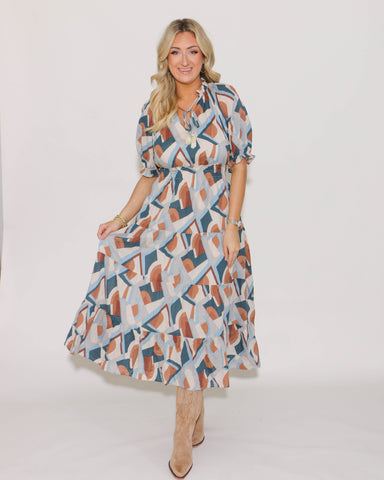 View full detailsIntroduce sophistication to your wardrobe with THML's Puff Sleeve Print Dress. Featuring an abstract fall diamond print, this dress will add an art...