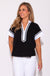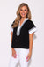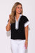 Elevate your style with our Black and White Stripe Contrast Top. Featuring a flattering V-neck and contrast trim short sleeves, this top is made of soft and breathable cotton for all-day comfort. Make a bold statement with this must-have piece!
