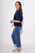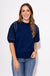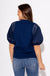 Elevate your wardrobe with the Navy Duo Top, featuring a chic blend of textures. The body’s smooth poplin contrasts beautifully with puff sleeves crafted from a softer, blue-toned knit fabric, creating a dynamic two-tone look. Designed to offer both comfort and style, this top adds a sophisticated edge to any outfit, perfect for day-to-night versatility.