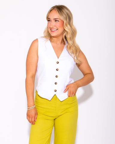 View full detailsElevate your style with our Linen Ease V Neck Vest! Featuring a sophisticated V-neck and welted pockets, this vest is perfect for formal occasions ...